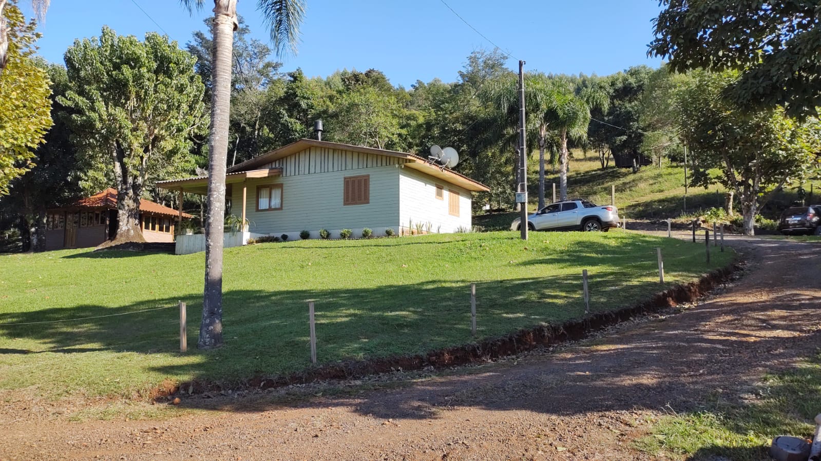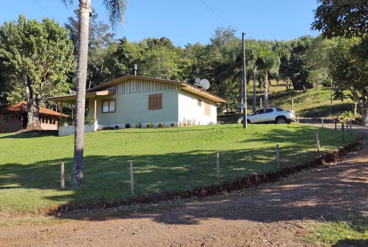 Linda Chácara com 23.458,20m2( 2,3 hectares de terras rurais), com benfeitorias, sendo uma casa mista de 70,00m2(composta de uma sala, cozinha, banheiro, 2 dormitórios e sacada), um Quiosque de 30,00m2(cozinha, churrasqueira), 3 pequenos galpões de madeira( de 20,00m2, 30,00m2 e 40,00m2).