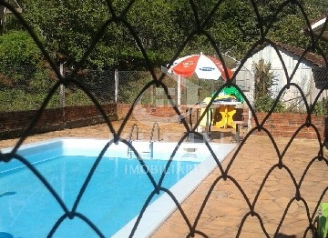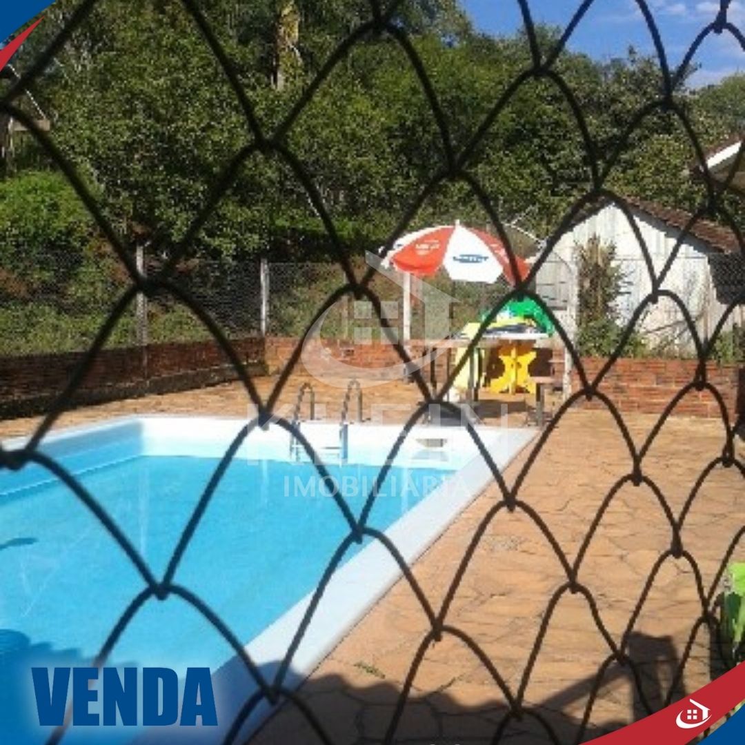 Possui casa em alvenaria com 4 dormitórios, 2 banheiros, 2 salas e 2 cozinhas, telhado com laje. Chalé para caseiro com dois dormitórios, banheiro, sala/cozinha e área.