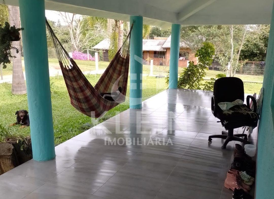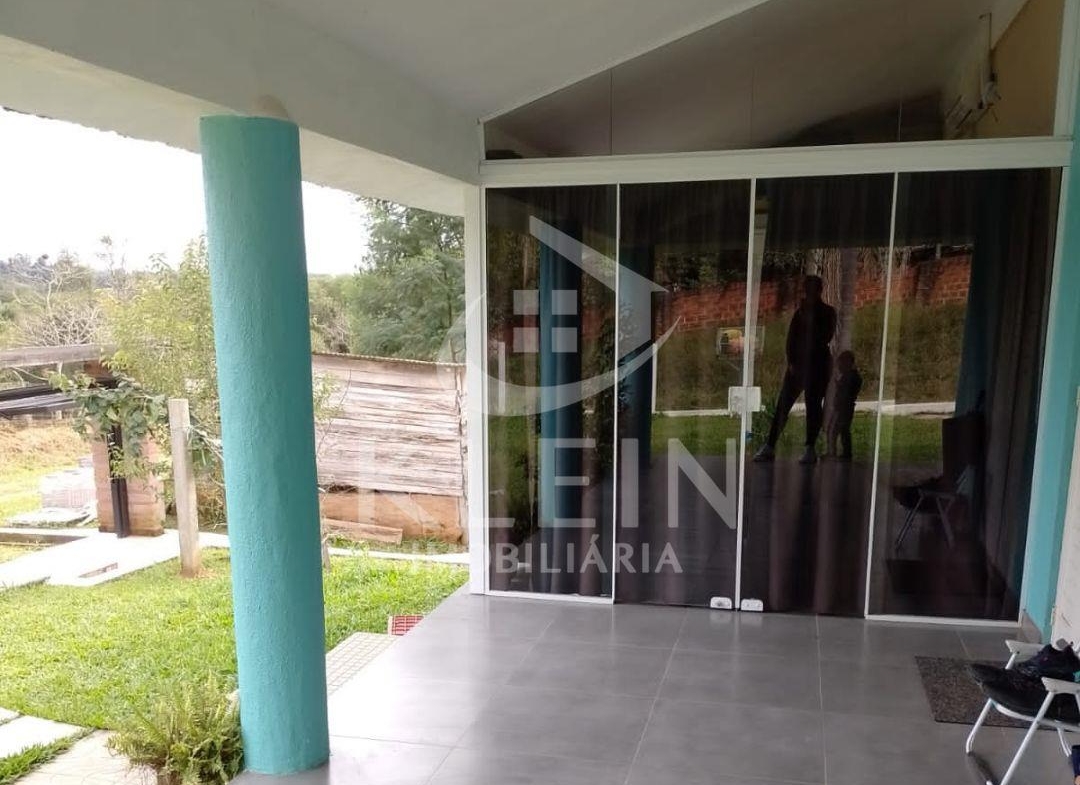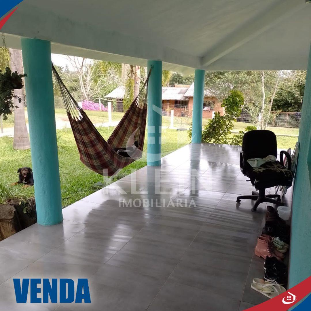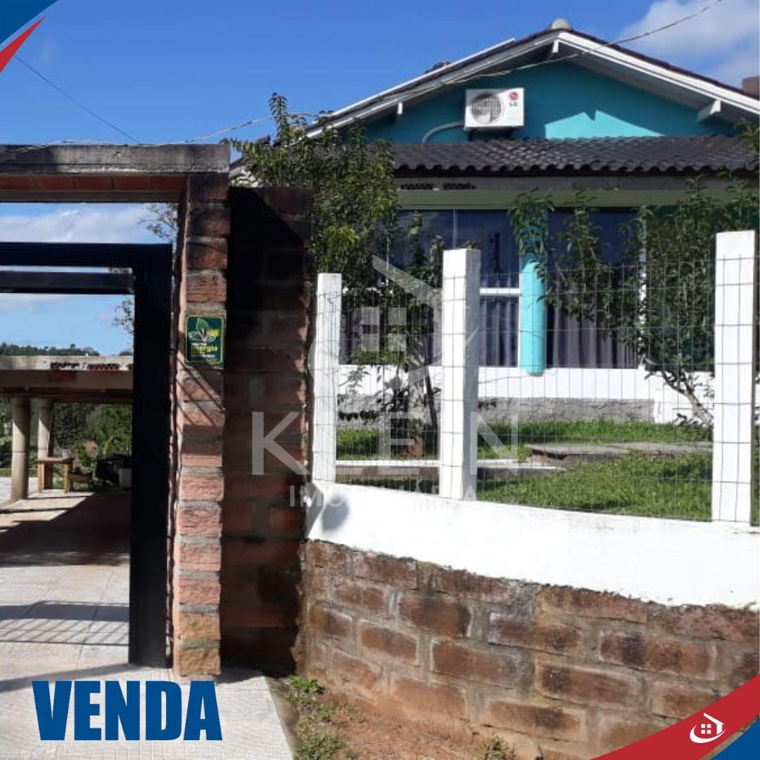 Casa em alvenaria com aprox. 200m². Possui 3 dormitórios, sala de estar/jantar com lareira, cozinha, 2 banheiros, garagem para 2 carros, varanda com vidro, piscina e energia solar. Quiosque em alvenaria com fogão campeiro, churrasqueira e banheiro. Casa de boneca em alvenaria. Terreno com 3220,00m².