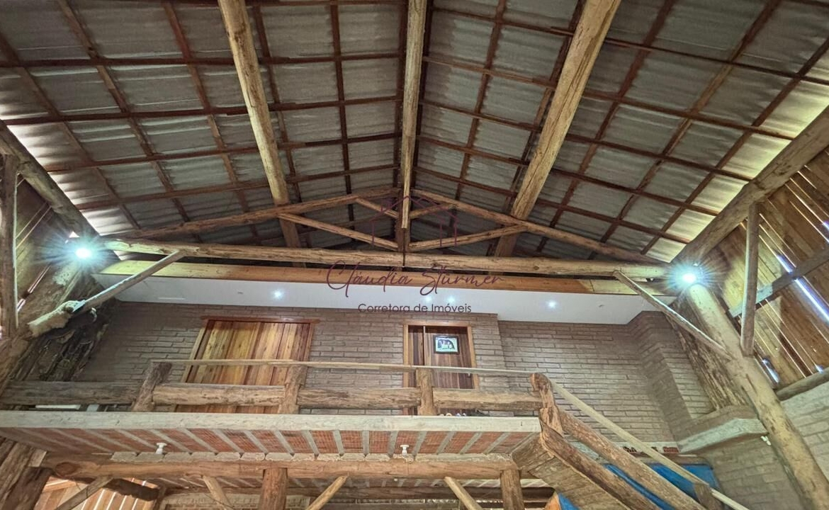 • Parte inferior: amplo espaço com lareira aconchegante, banheiro, cozinha e lavanderia.