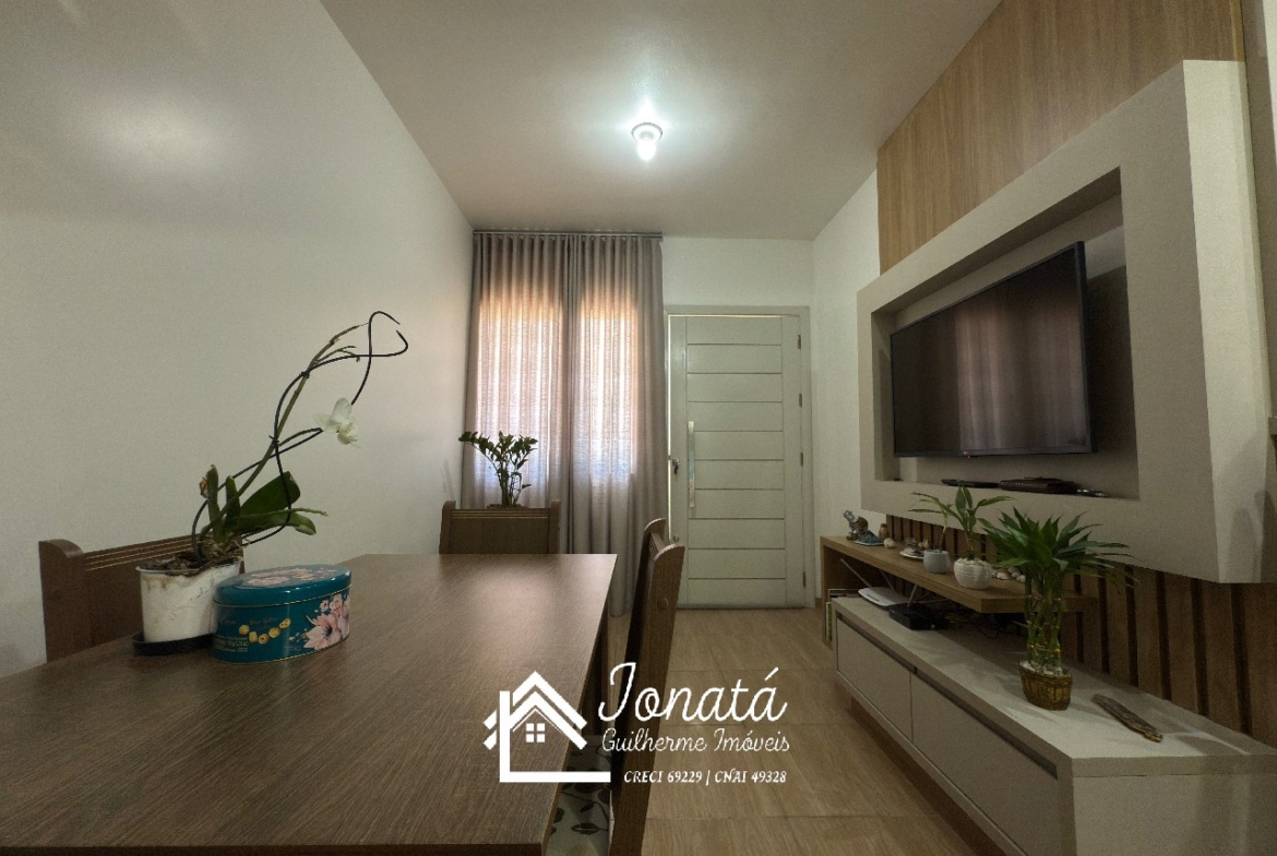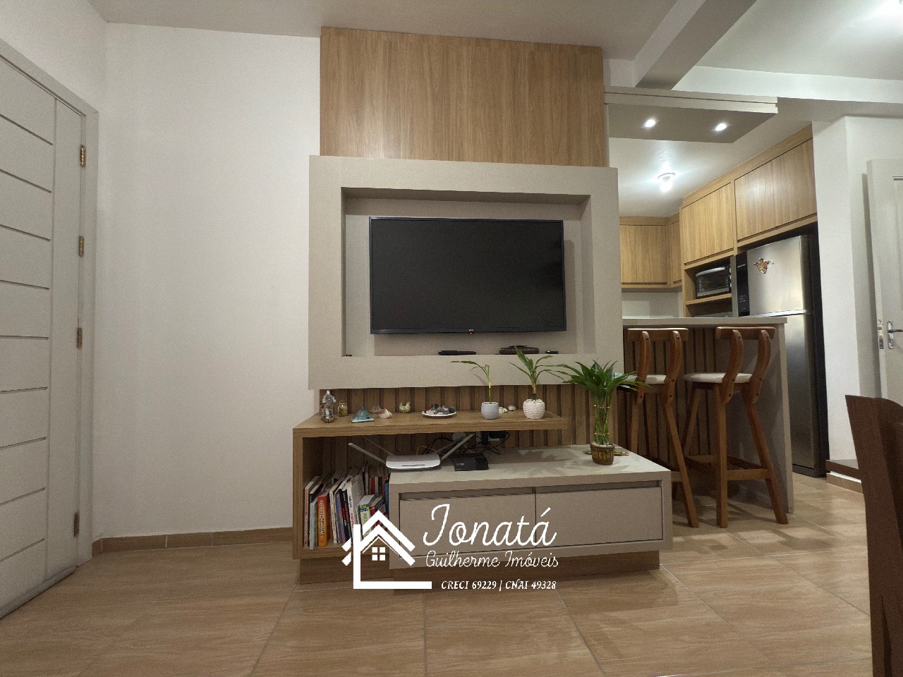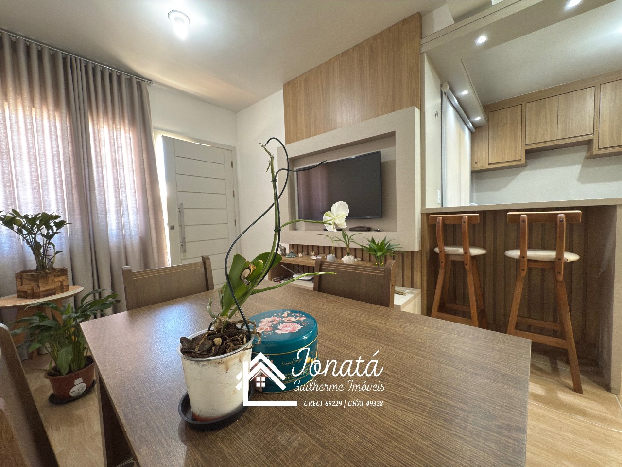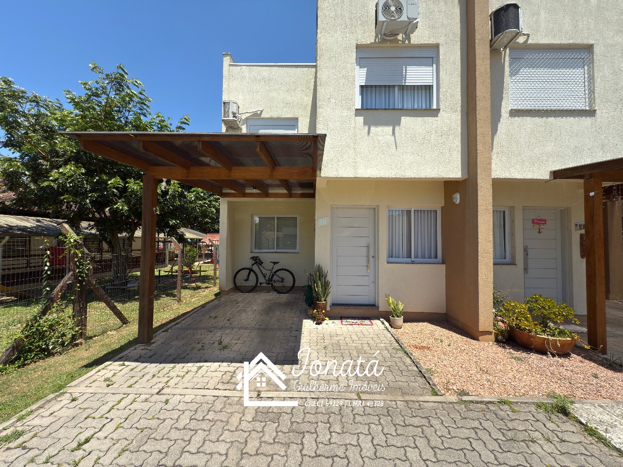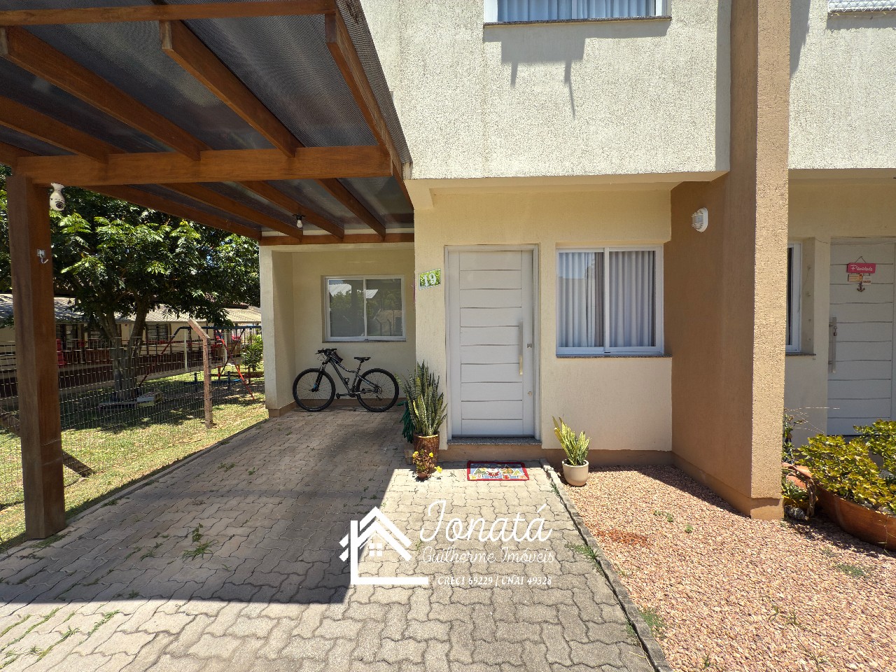 Sobrado com 54 m², distribuídos entre 2 dormitórios e banheiro no piso superior, cozinha e sala conceito aberto, área de serviço com churrasqueira, área coberta com vidro aos fundos, box de garagem coberta com pergolado.