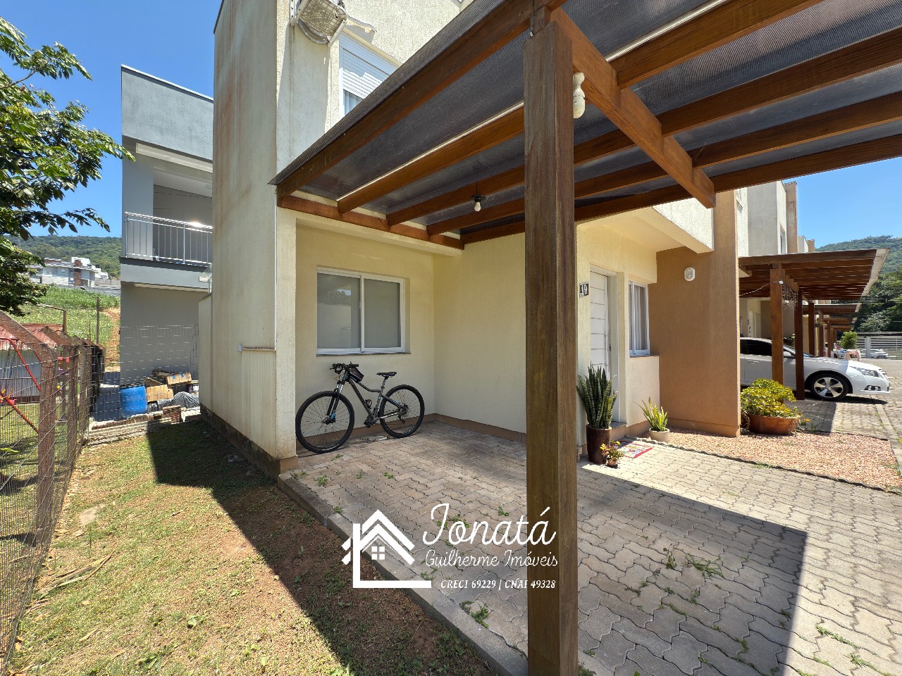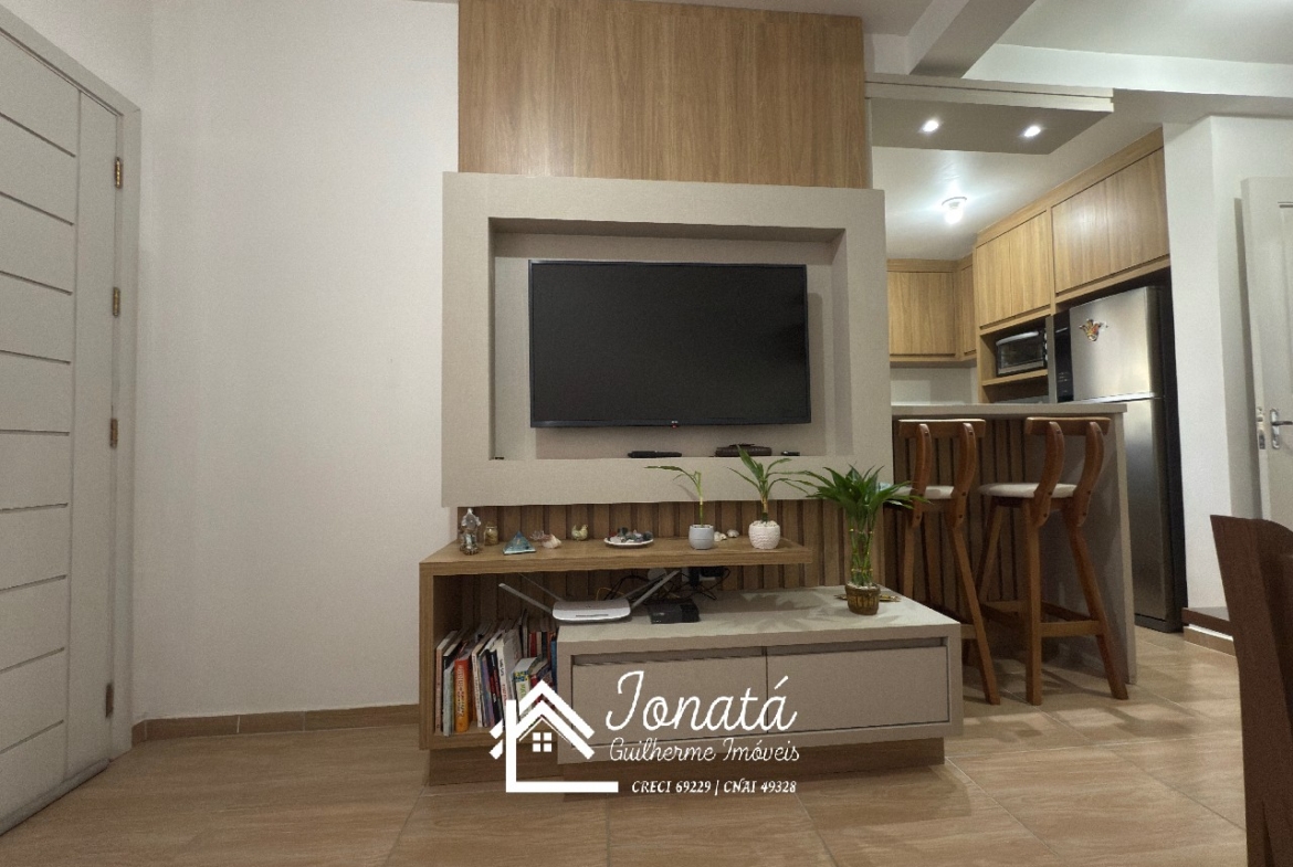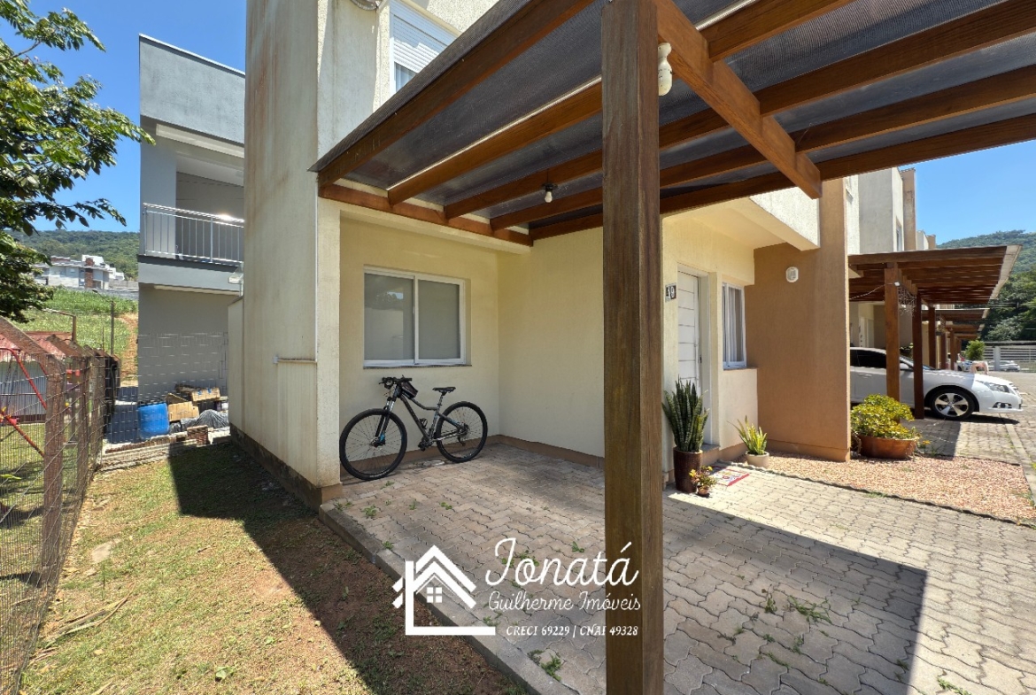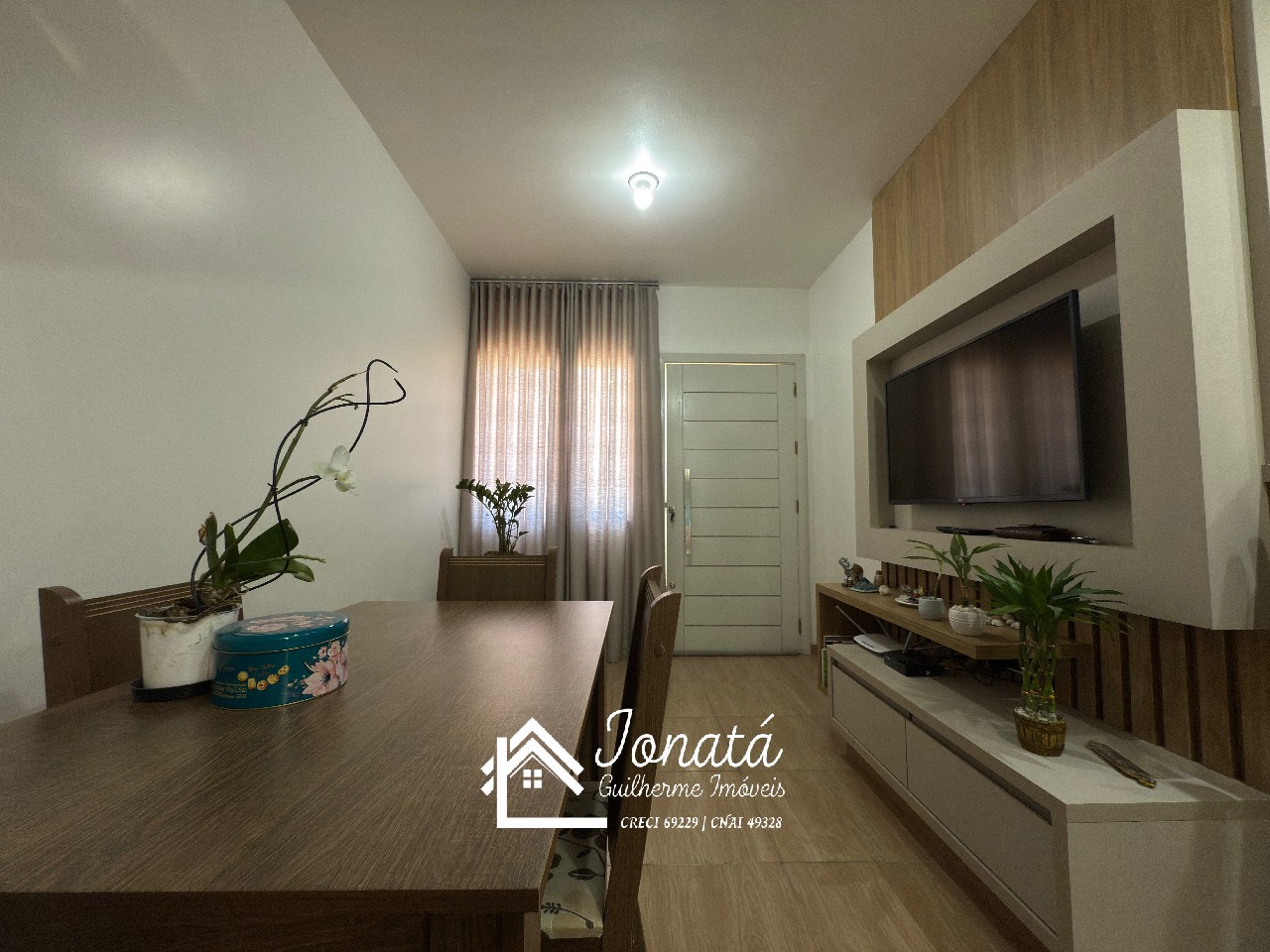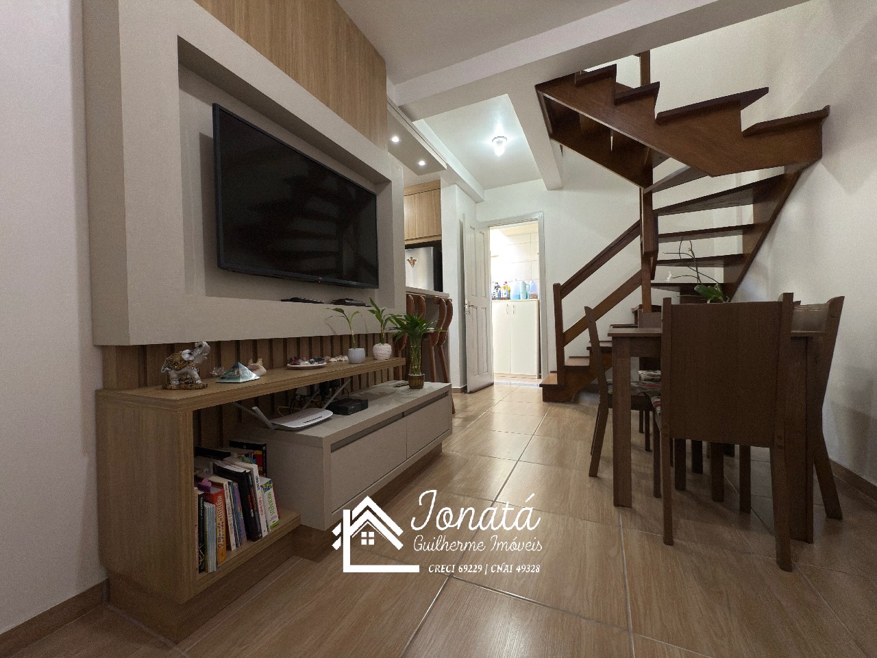Sobrado com 54 m², distribuídos entre 2 dormitórios e banheiro no piso superior, cozinha e sala conceito aberto, área de serviço com churrasqueira, área coberta com vidro aos fundos, box de garagem coberta com pergolado.