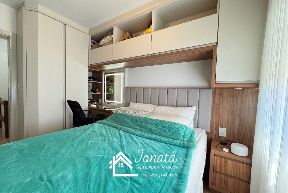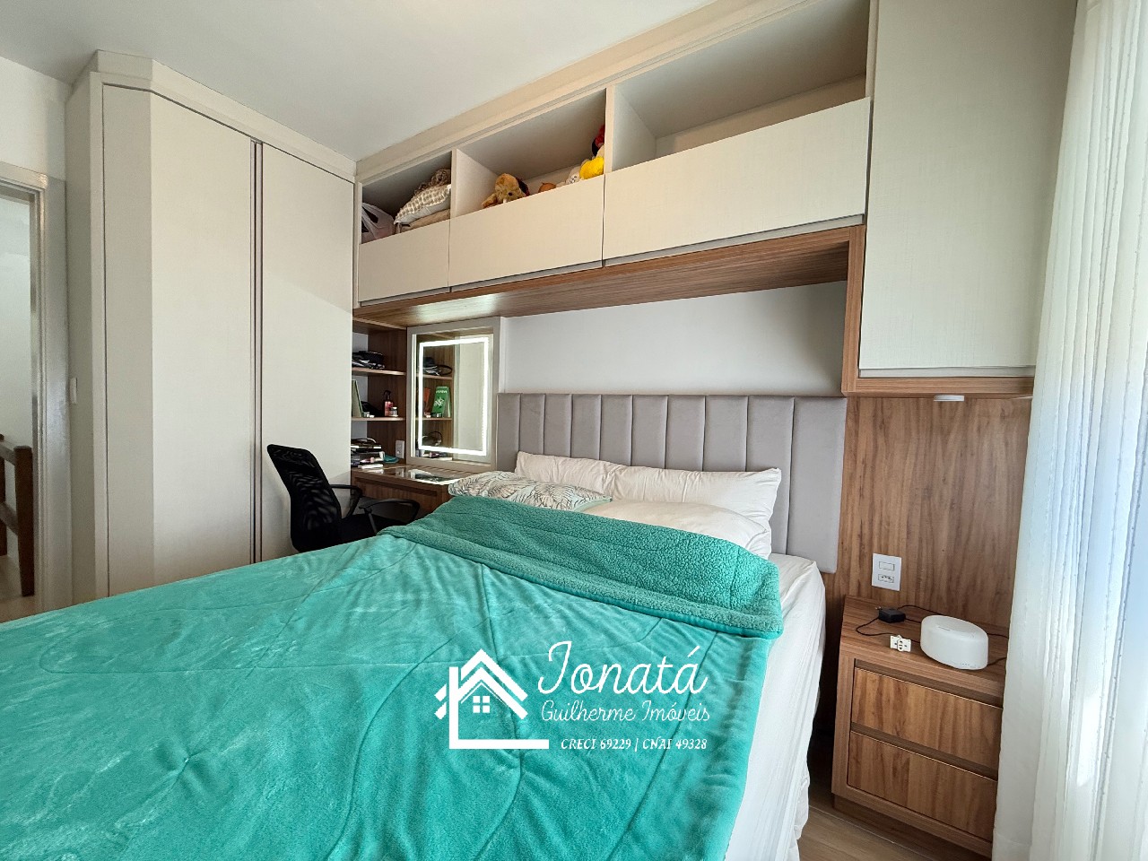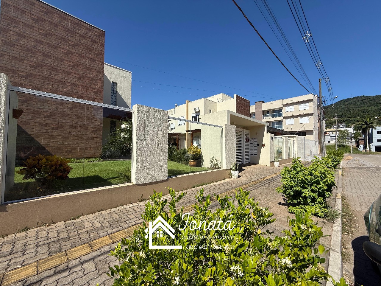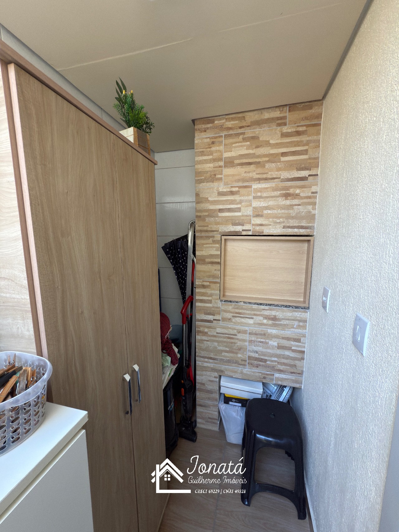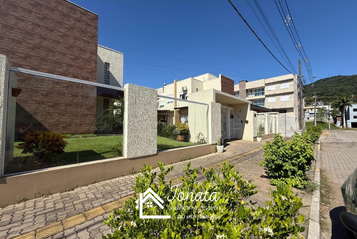 Sobrado com 54 m², distribuídos entre 2 dormitórios e banheiro no piso superior, cozinha e sala conceito aberto, área de serviço com churrasqueira, área coberta com vidro aos fundos, box de garagem coberta com pergolado.