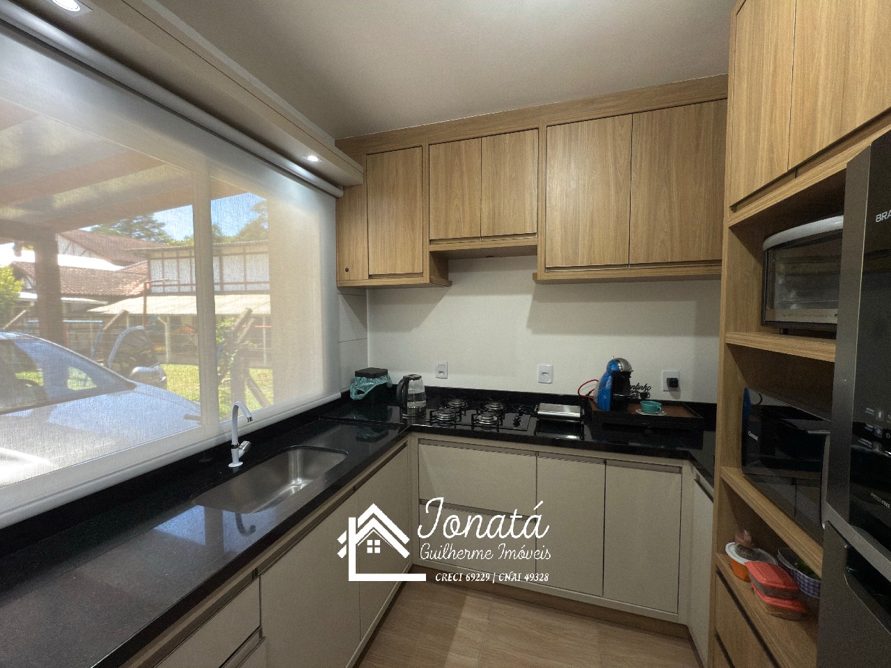 Acabamento de qualidade com piso em cerâmica, aberturas em alumínio, portas internas e escada em madeira e espera água quente na cozinha. Local seguro, calmo e com boa vizinhança. Sobrado mobiliado com móveis sob medida. Possui ainda um pátio ao lado que pertence ao imóvel.