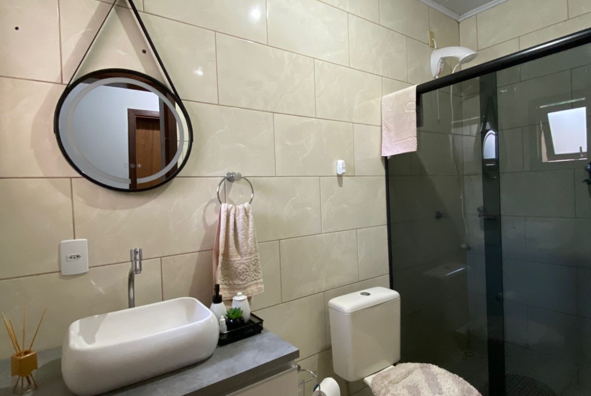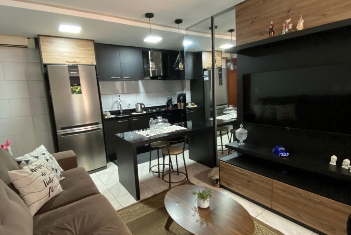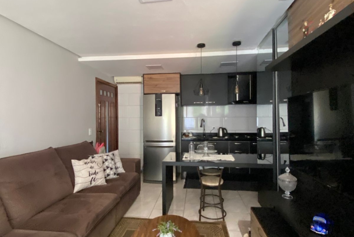 Sobrado no bairro Angico, com 2 dormitórios, 2 banheiros, sala e cozinha integradas com móveis sob medida, área de serviço e garagem.