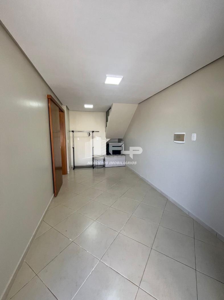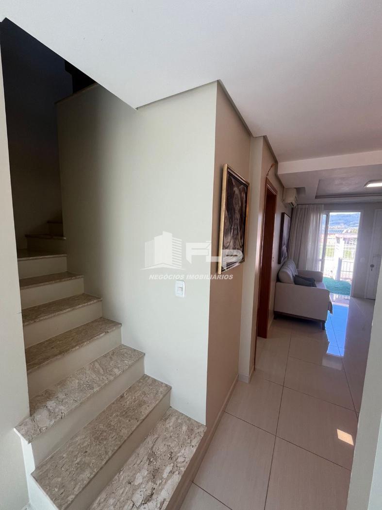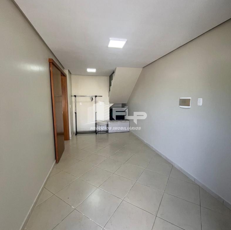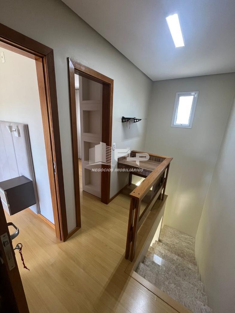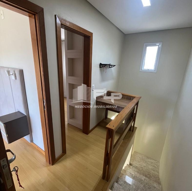 No andar superior, encontram-se dois dormitórios já mobiliados, além de um banheiro completo. O quarto da frente possui uma ampla sacada fechada em vidro, proporcionando ainda mais espaço e luminosidade.