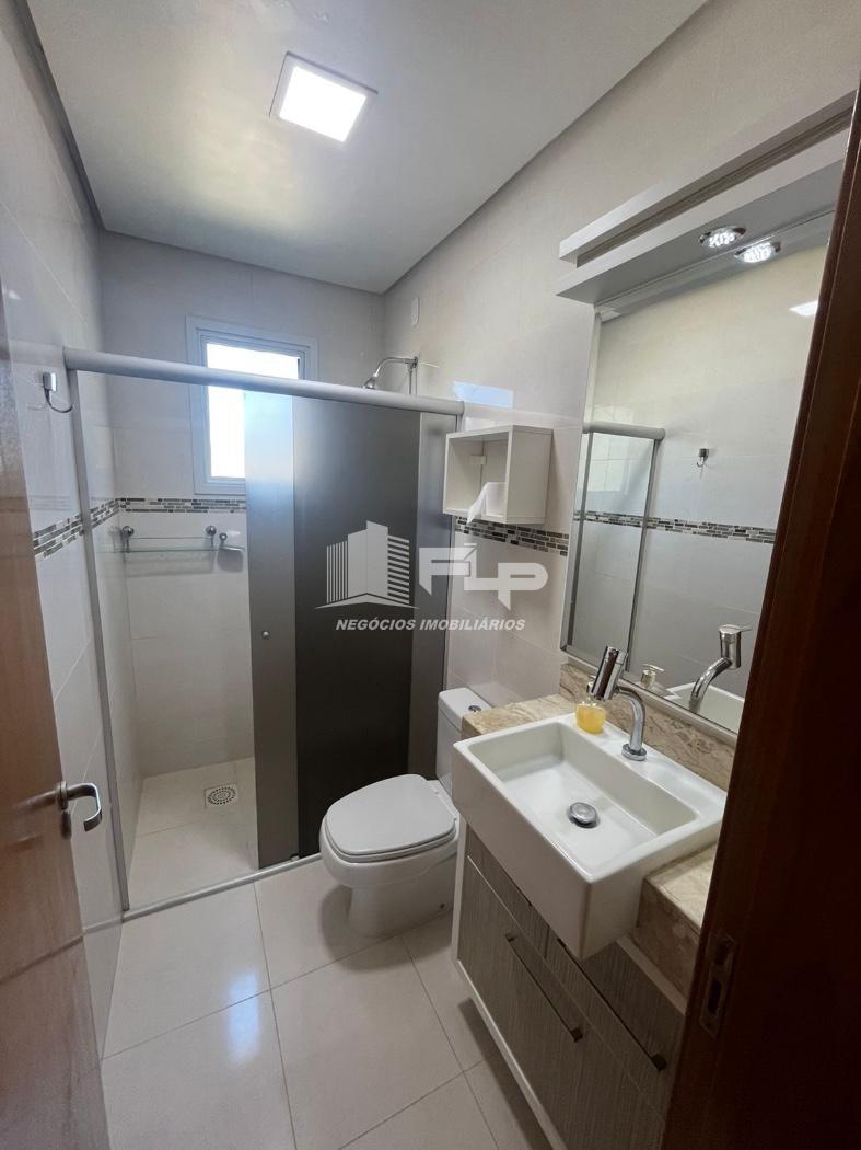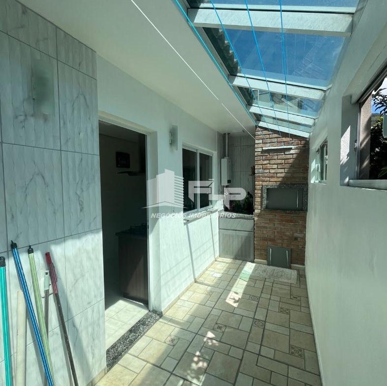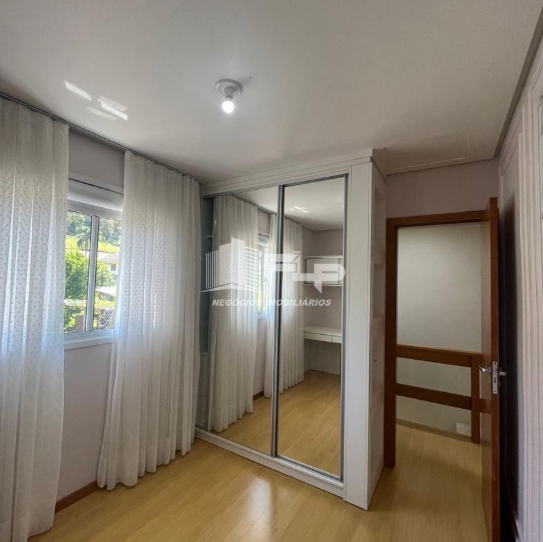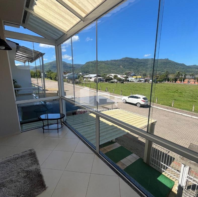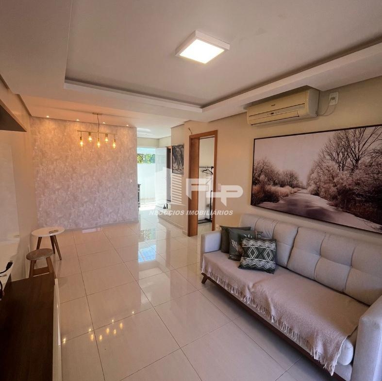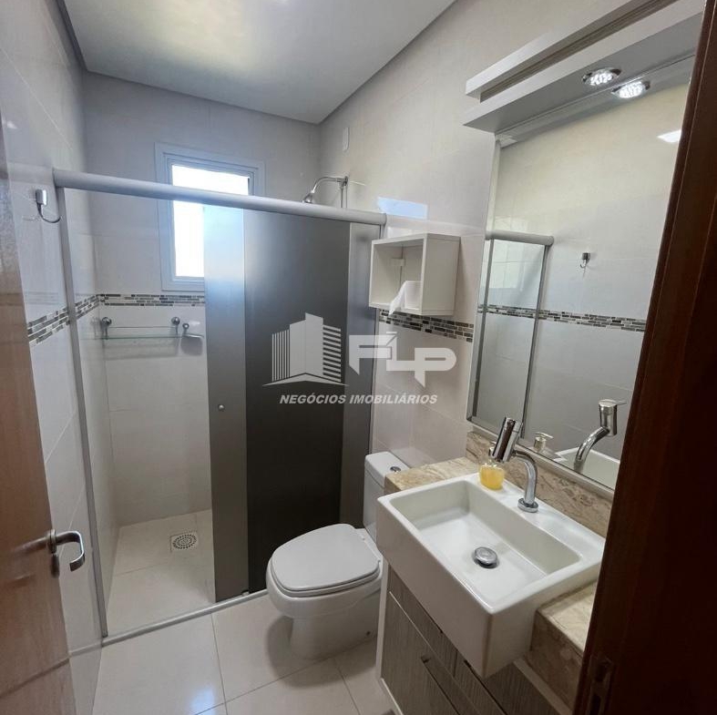 No andar superior, encontram-se dois dormitórios já mobiliados, além de um banheiro completo. O quarto da frente possui uma ampla sacada fechada em vidro, proporcionando ainda mais espaço e luminosidade.