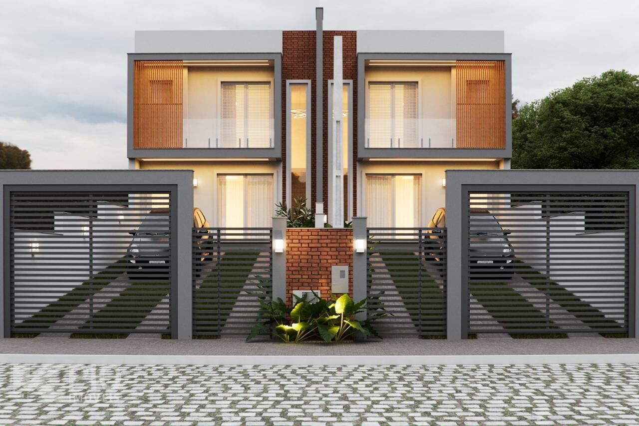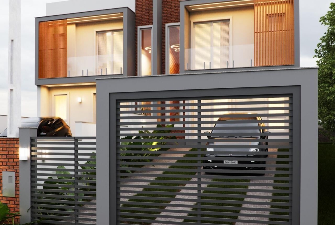 Sobrados na planta no Loteamento Laux com 3 dormitórios, 3 banheiros, sendo 1 lavabo, cozinha, sala de estar, sala de jantar, área de serviço e garagem. Também possui churrasqueira.