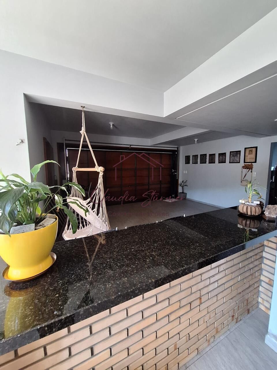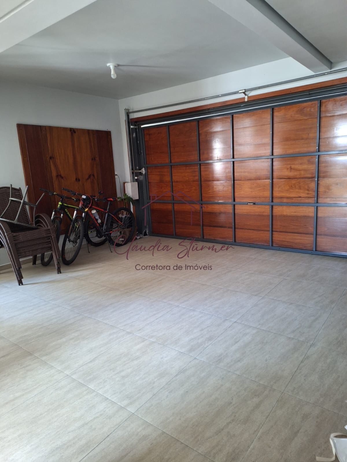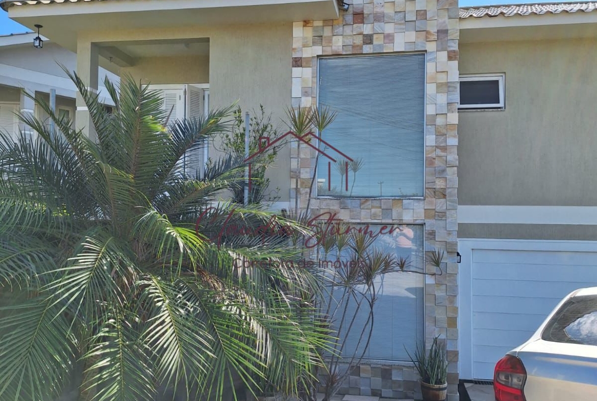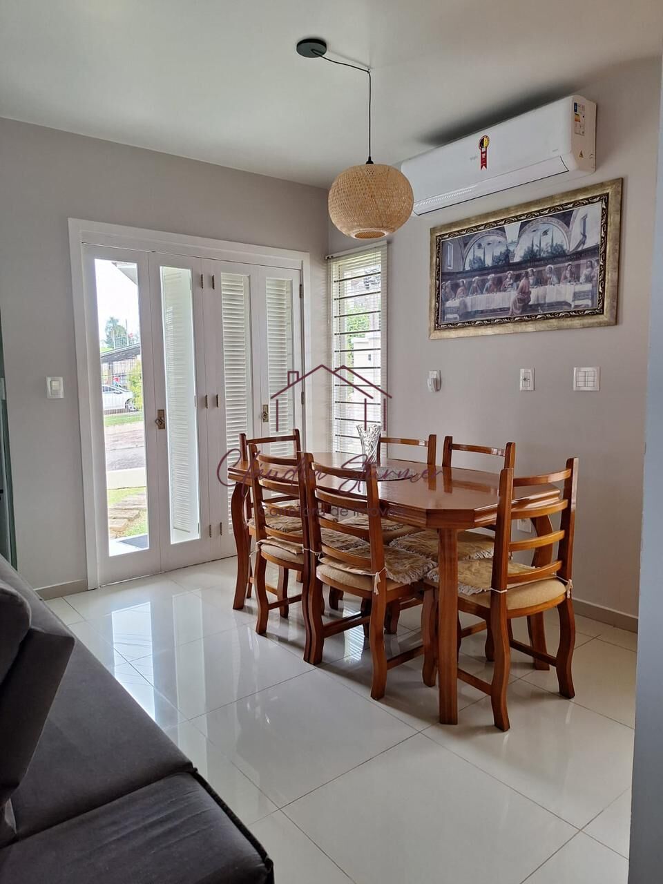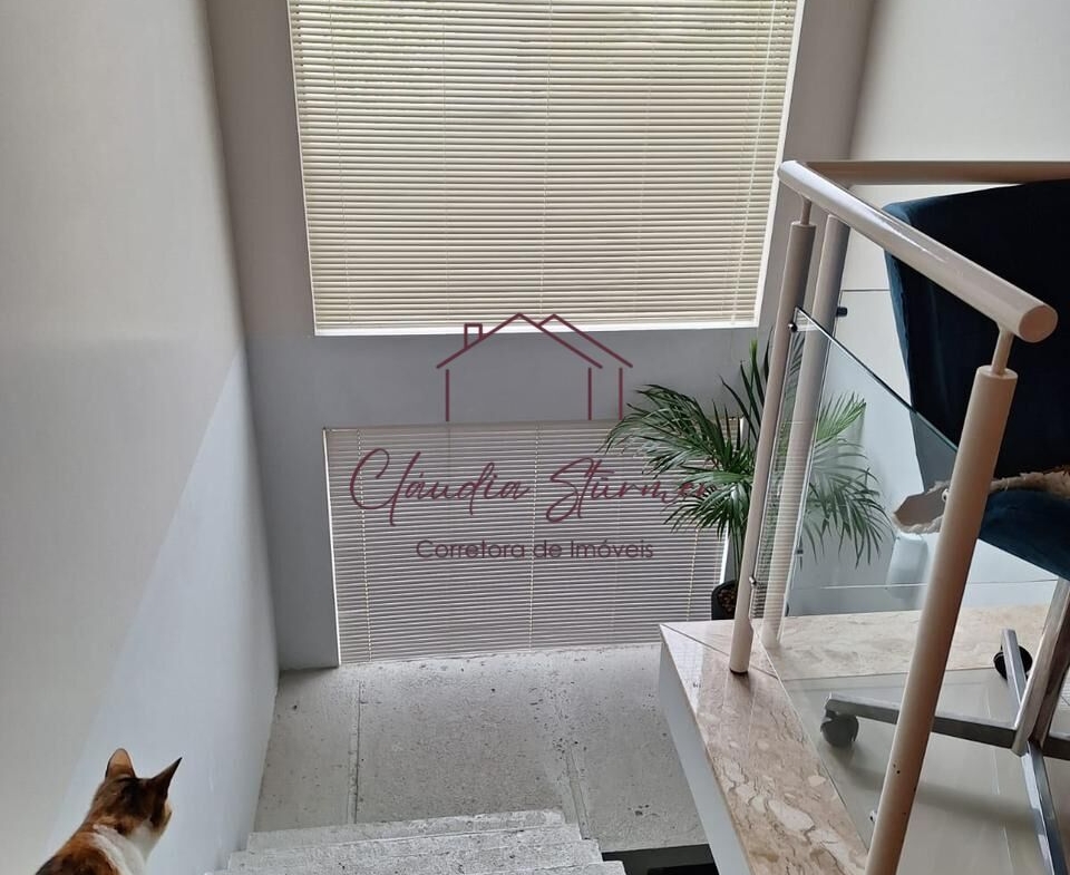 Possui 3 dormitórios, sendo 1 suíte, 3 banheiros, ampla sala de estar integrada à sala de jantar e cozinha, lavanderia no andar inferior, cozinha auxiliar e garagem fechada para 2 veículos.
