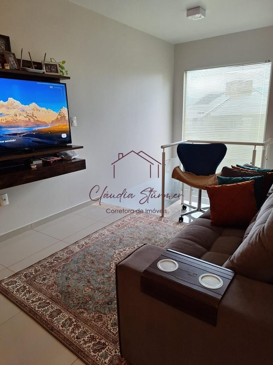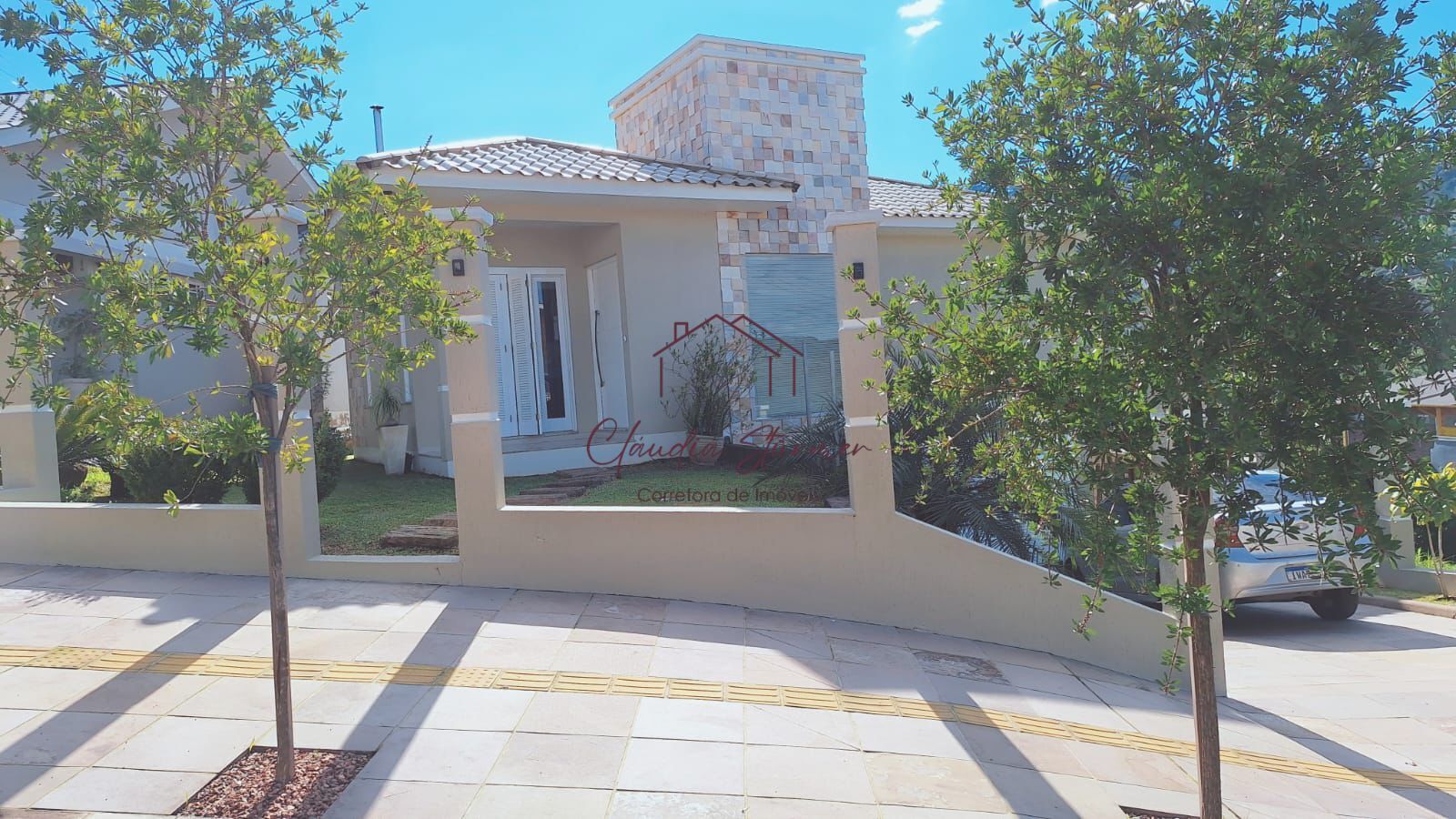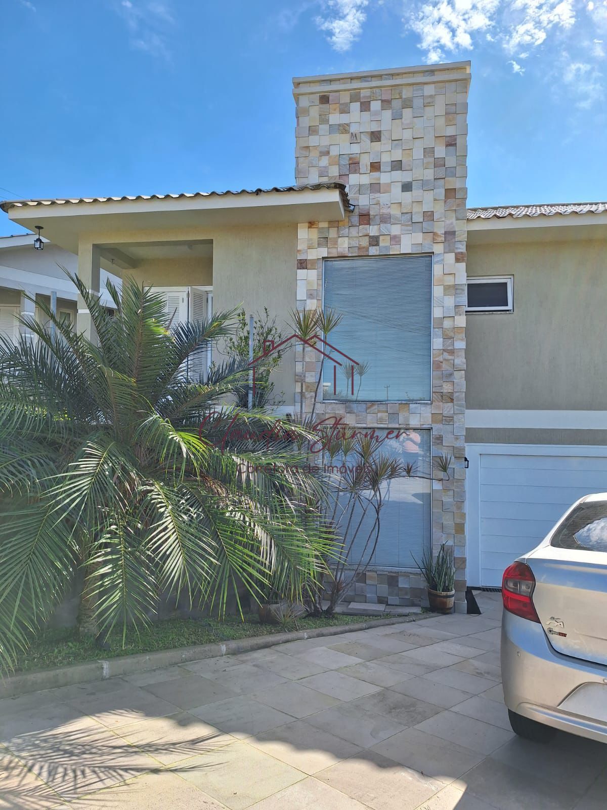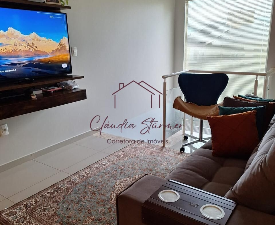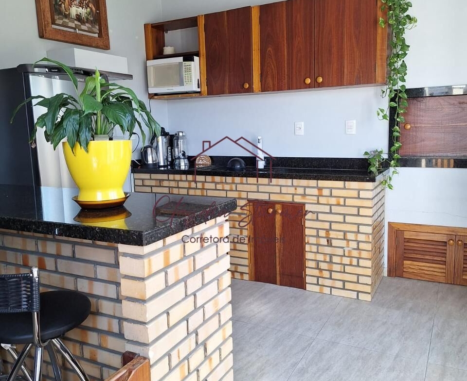 Possui 3 dormitórios, sendo 1 suíte, 3 banheiros, ampla sala de estar integrada à sala de jantar e cozinha, lavanderia no andar inferior, cozinha auxiliar e garagem fechada para 2 veículos.