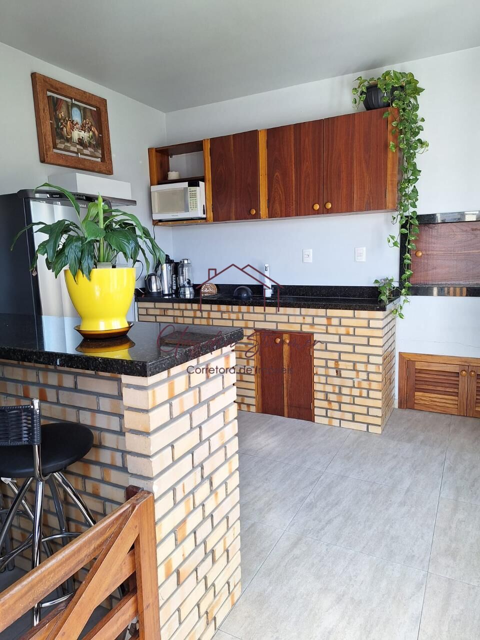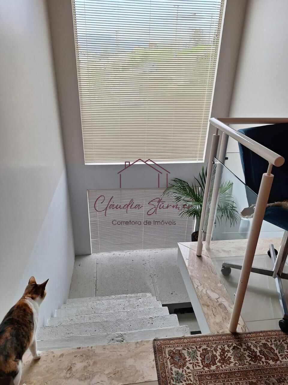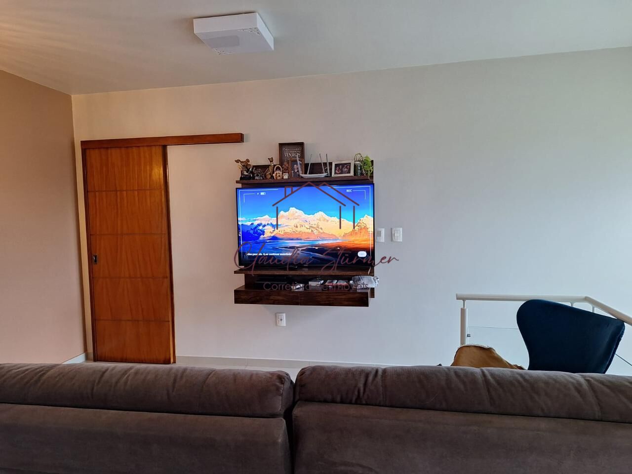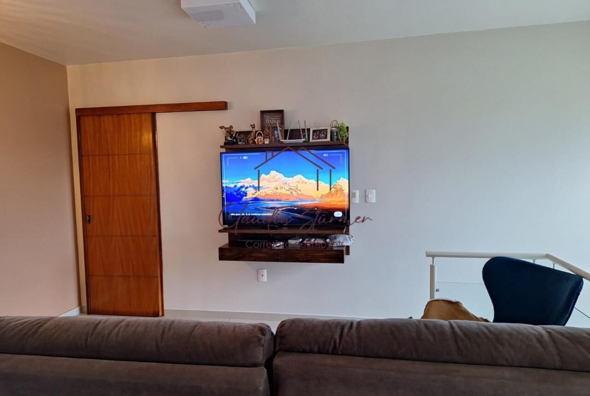 Possui 3 dormitórios, sendo 1 suíte, 3 banheiros, ampla sala de estar integrada à sala de jantar e cozinha, lavanderia no andar inferior, cozinha auxiliar e garagem fechada para 2 veículos.