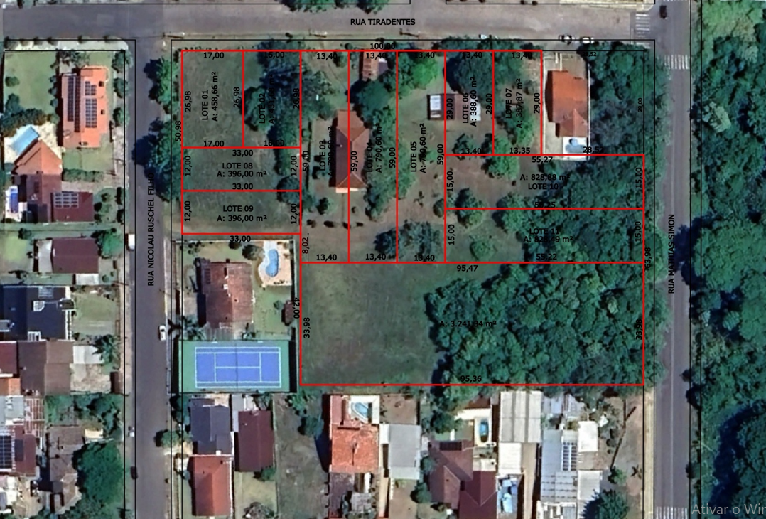 ótima localização no final da Rua Tiradentes esquina com a Rua Nicolau Ruschel Filho e Rua Mathias Simon(perto do Cartório, Tabelionato, Promotoria, Detran, Banco Sicredi, Mercado Selbach e comércio em geral).